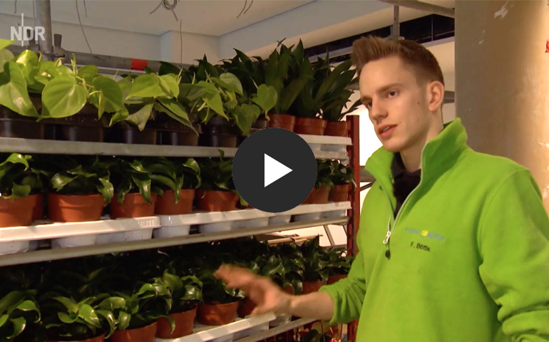 Das Steckenpferd des 25-Jährigen ist es, Büros, Restaurants und öffentliche Gebäude grüner zu machen, um damit das Raumklima zu verbessern. Finn Böttle träumt schon jetzt von der Außenbegrünung ganzer Häuser in Hamburg, um die Luft in der Stadt mit seinen Pflanzen sauber zu halten. Wie realistisch die Verwirklichung dieses Traums ist, erklärt er im Film.